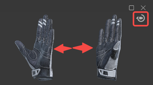 マウスの右ボタンを押したまま左右移動により手のモデルを回転することが可能です。