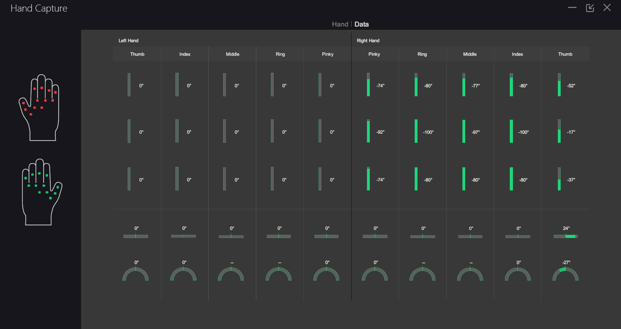 手の設定をオンにすると、任意のセンサーのピッチ角度(曲がり具合)とヨー角度(インデックスの角度)を微調整できます。